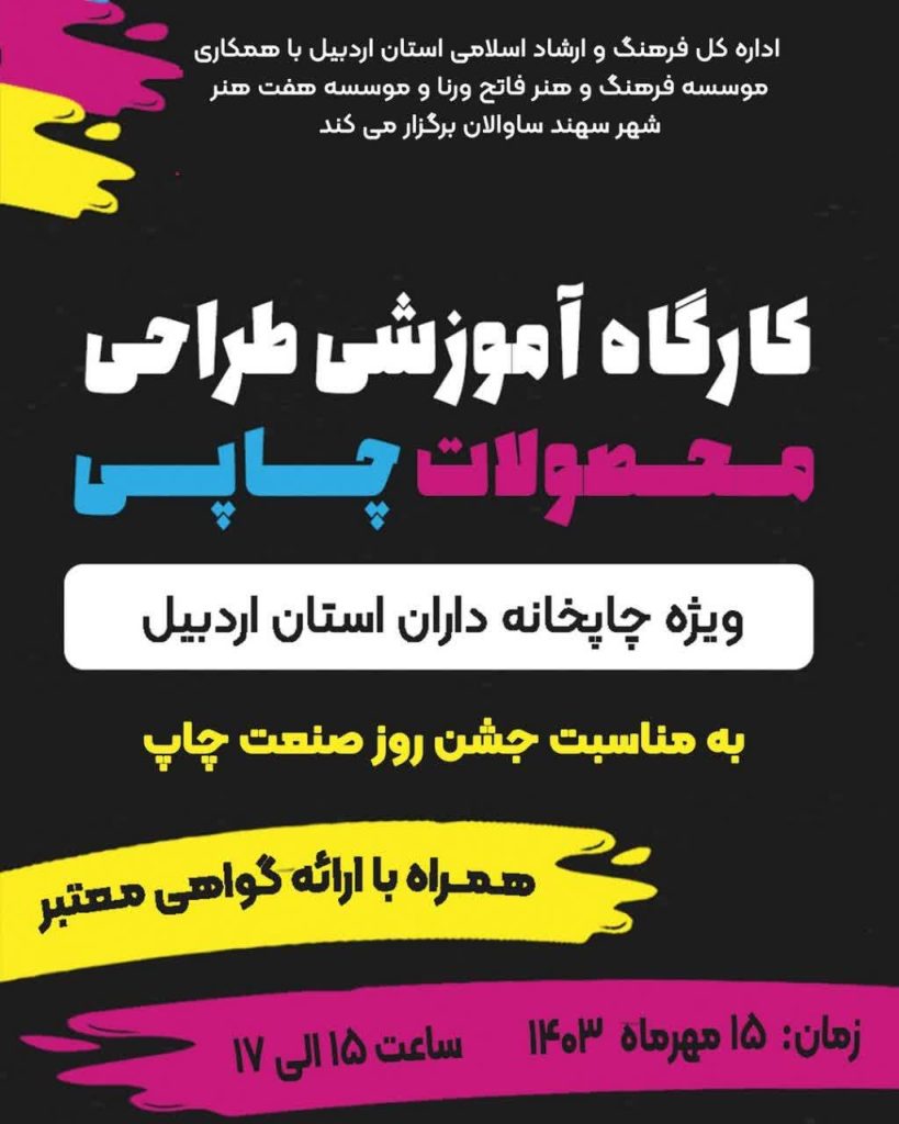 با توجه به اهمیت طراحی محصولات چاپی در صنعت چاپ و لزوم ارتقاء مهارتهای فنی و هنری چاپخانهداران، کارگاه آموزشی طراحی محصولات چاپی با هدف آشنایی شرکتکنندگان با اصول و تکنیکهای طراحی به همت اداره کل فرهنگ و ارشاد اسلامی استان اردبیل و موسسه #فرهنگ_و_هنر_فاتح_ورنا (شاخه فرهنگی هلدینگ #تیک_آپ) روز یکشنبه ۱۵ مهرماه در محل مجتمع دیجیتالی فدک اردبیل برگزار شد. این کارگاه فرصتی مناسب برای یادگیری و تبادل تجربیات میان فعالان این حوزه بود.